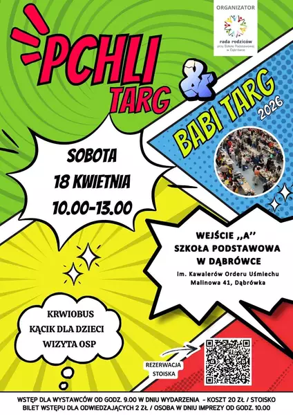 Zapraszamy wszystkich miłośników okazji, nietuzinkowych przedmiotów i wyjątkowej atmosfery na nasz Pchli Targ – Babi Targ, który odbędzie się w Szkole Podstawowej im. Kawalerów Orderu Uśmiechu w Dąbrówce.